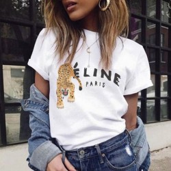 White cotton T-shirt with central print "Feline".